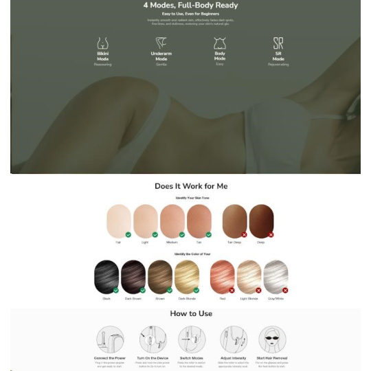 • Cílená péče pro celé tělo: Několik režimů a úrovní intenzity pro bezpečné ošetření nohou, rukou, podpaží, oblasti bikin i obličeje.