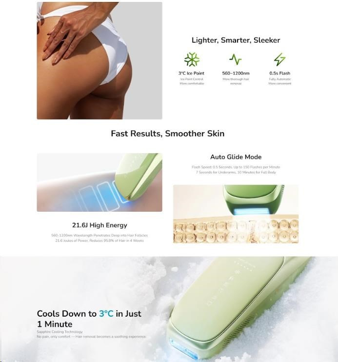 • Revoluční chlazení na 10 °C: Pokročilá chladicí technologie zaručuje naprosto bezbolestné a komfortní ošetření bez pálení a podráždění.