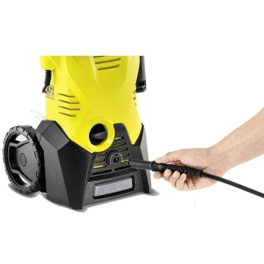 U čističe Kärcher K 3 oceníte snadné a pohodlné připojení vysokotlaké hadice. Čistič obsahuje praktickou nádržku na čisticí prostředek, se který vám půjde čištění snadněji. Aby se kabel neválel zbytečně po zemi, je Kärcher K 3 vybaven velkým kabelovým hákem.