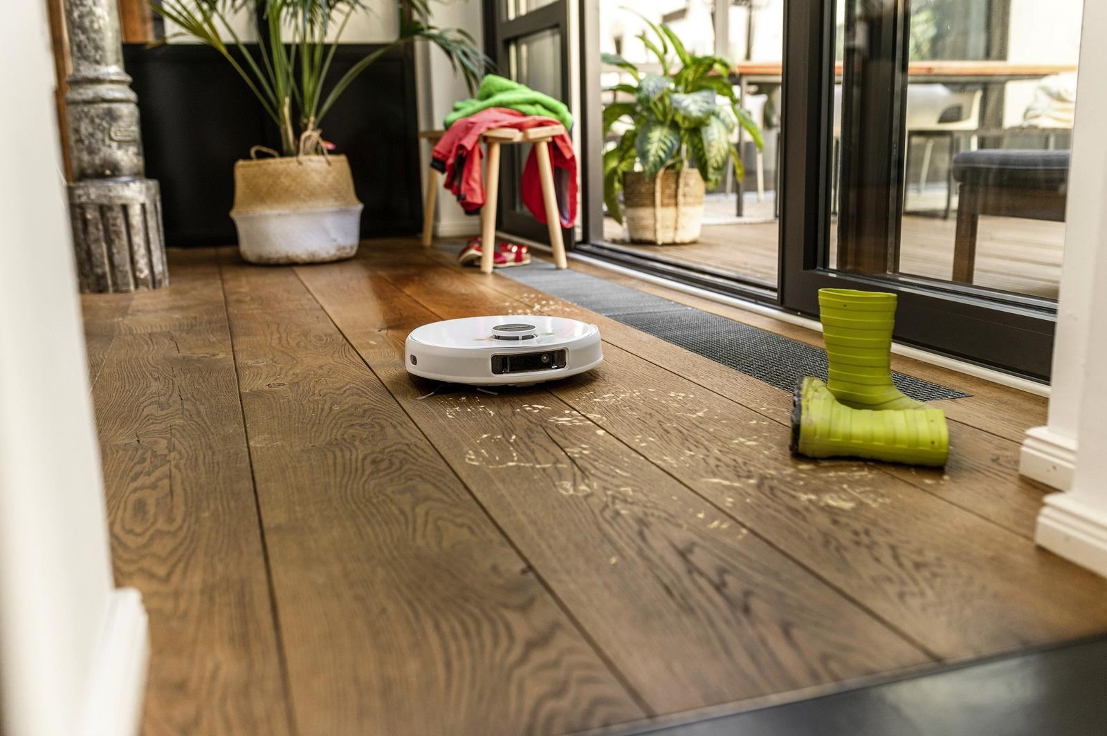 RCV 5 automaticky detekuje kobercové povrchy pomocí ultrazvukového senzoru a zobrazuje je na mapě v aplikaci. Pokud je aktivováno mokré mopování, robot se detekovaným kobercovým povrchům vyhne a objede je. Funkce Auto Boost podle potřeby zvyšuje sací výkon na kobercových površích pro ještě lepší výsledky úklidu.