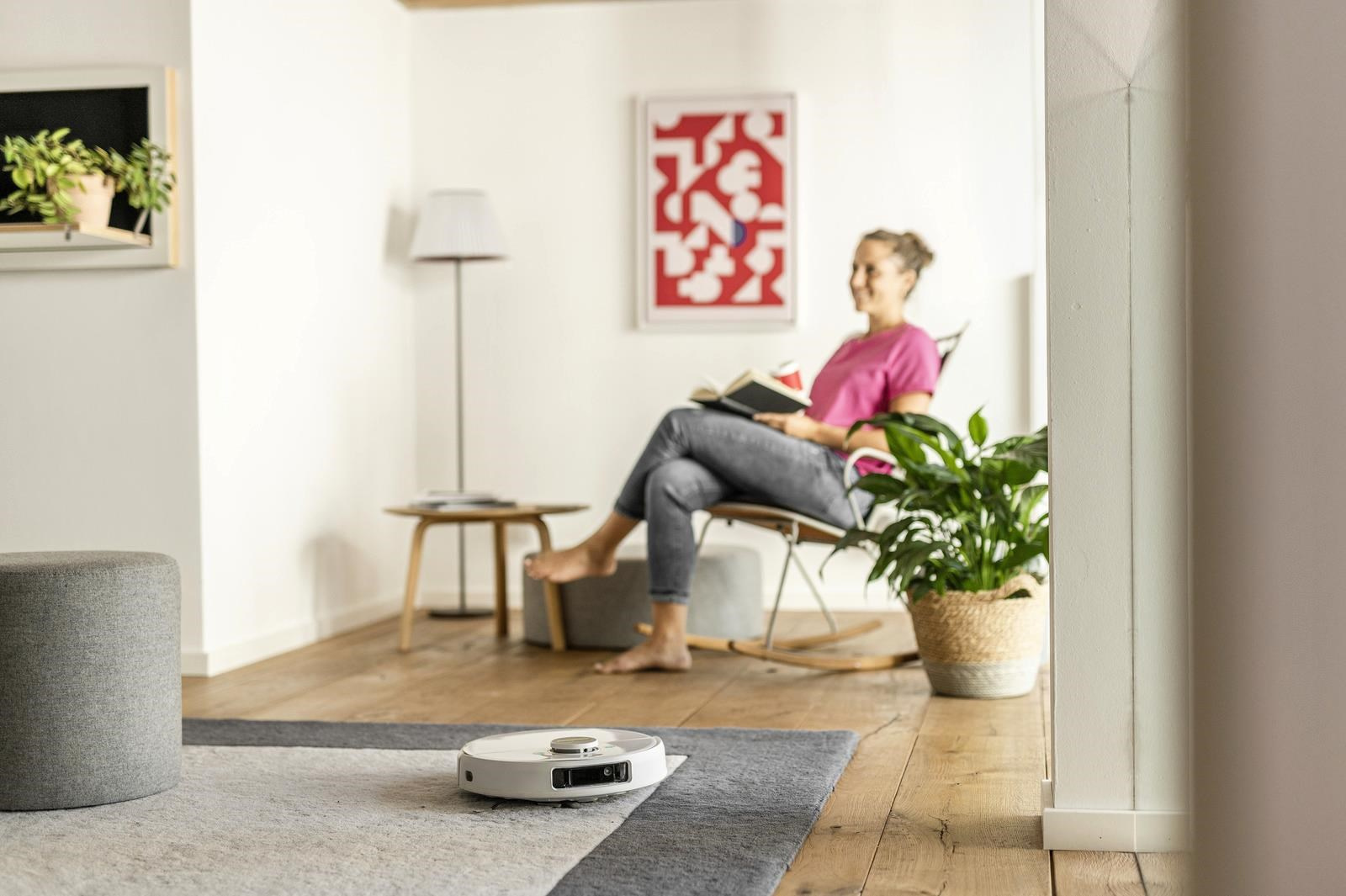 Tvrdé podlahy a koberce s nízkým vlasem čistí chytrý čisticí robot RCV 5 samostatně a systematicky. Suché nečistoty jsou transportovány do vestavěné nádoby na odpad rotačním kartáčem, bočním kartáčem na okraje a ventilátorem. Ultrazvukový senzor rozpozná koberce, které by bylo lepší vyčistit pomocí funkce Auto Boost pro maximální sací výkon. RCV 5 nejen vysává, ale umí také mokře vytírat. V režimu mopování se kobercům automaticky vyhýbá. Prostřednictvím aplikace je RCV 5 vyslán na průzkumnou cestu a automaticky vytvoří mapu místností na základě detekce okolí (LiDAR). Pro každou místnost lze nastavit individuální parametry úklidu. Například které místnosti se mají vysávat, vytírat nebo neuklízet. Díky duálnímu laserovému systému s kamerou nejvyšší model RCV 5 také detekuje a vyhýbá se plochým překážkám, jako jsou kabely, ponožky nebo boty. Další senzory zabraňují pádu zařízení například ze schodů. Pro úklid můžete RCV 5 pohodlně spustit prostřednictvím aplikace, pomocí přednastaveného individuálního plánu nebo stisknutím tlačítka na zařízení. Pokud úklidový robot potřebuje pomoc, v mnoha situacích vám to sdělí prostřednictvím hlasového výstupu.