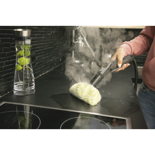 Parní čistič SC 4 EasyFix nabízí vysokou úroveň pohodlí a může se pochlubit integrovanou přihrádkou na kabel, přihrádkou na příslušenství a parkovací pozicí pro podlahovou hubici. Podlahová hubice EasyFix zaručuje vynikající ergonomii díky flexibilnímu kloubu, zatímco lamelová technologie zajišťuje zářivě čisté výsledky. Pomocí praktického systému háčků a smyček lze podlahovou utěrku z mikrovlákna rychle a snadno připevnit k podlahové hubici a opět sejmout, aniž by musela přijít do kontaktu se špínou. Pomocí dvoustupňové regulace páry lze intenzitu páry přizpůsobit povrchu a nečistotám. Díky širokému příslušenství se dlaždice, varné desky, odsavače par a dokonce i ty nejmenší mezery rychle rozzáří jako nové - odstraníte i ty nejodolnější nečistoty. Trvale plnitelná a vyjímatelná nádržka na vodu umožňuje nepřetržité čištění. SC 4 EasyFix čistí bez použití chemikálií a lze jej použít prakticky kdekoli v domácnosti. Důkladné čištění parním čističem Kärcher odstraní 99,999 % koronavirů* a 99,99 % všech běžných domácích bakterií** z typických tvrdých povrchů v domácnosti.
