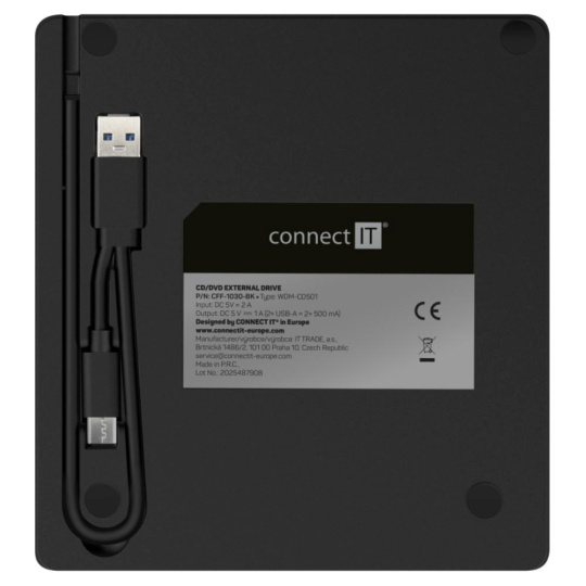 Pokud vlastníte notebook, ultrabook či netbook, je toto malé zařízení přesně to, co potřebujete. Můžete ho používat pro instalaci softwaru nebo k vytváření záloh. Externí CD/DVD SlimDrive vypalovačka CONNECT IT je napájena pomocí USB-C / USB-A portu, takže nepotřebujete žádný napájecí adaptér. Je jen o něco větší než DVD a snadno se vejde do kapsy batohu či brašny, můžete ji tedy vždy nosit s sebou.