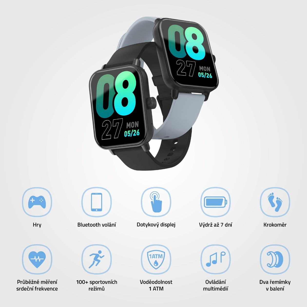 Součástí balení hodinek jsou dva řemínky, černý a šedý, který si můžeš střídat podle nálady nebo outfitu.