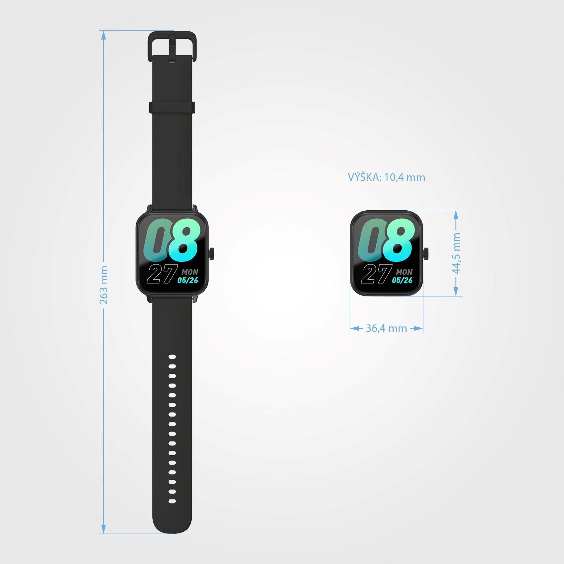Rozměry hodinek včetně pásku 263×36,4×10,4 mm