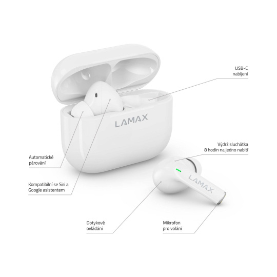 LAMAX Clips1 ti udělají radost vyladěným LAMAX BeatBass® zvukem, kdykoliv si je nasadíš. Nahoď fresh playlist a zaposlouchej se do masivních beatů! S nejnovějším Bluetooth 5.1 a AAC kodekem ti potečou songy z mobilu do sluchátek v nejvyšší kvalitě. Přepínej je rychlostí blesku díky dotykovému ovládání. Špunty se připojí, hned jak je vyndáš z pouzdra.