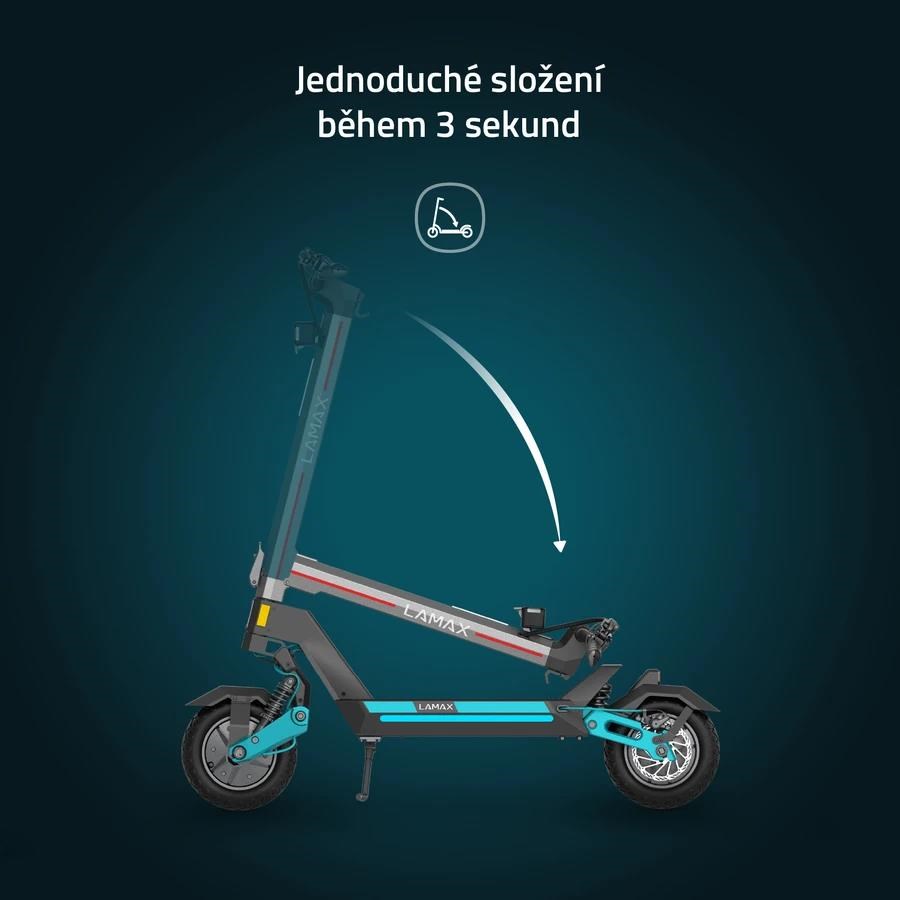 Dobře vypadá a vydrží nespočet kilometrů. Velmi kvalitně zpracovaná a pevná konstrukce ti zajistí zábavu na spoustu let. Koloběžka má i praktický skládací mechanismus, takže ji sklopíš a odneseš za pár vteřin.