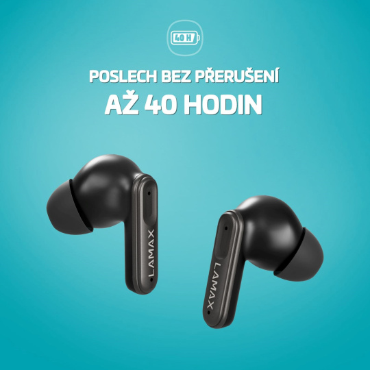 Jestli zvládneš 8 hodin nonstop poslechu je otázka, ale sluchátka to dají s přehledem. Díky pouzdru máš k dispozici celkem až 40 hodin.