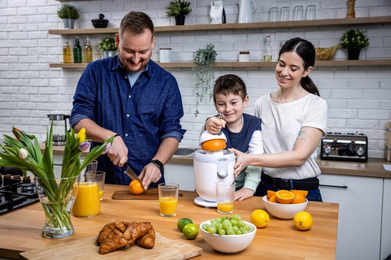 Elektrický citrusovač pracuje natolik tiše, že jej lze používat i v případě, když celá domácnost ještě spí.