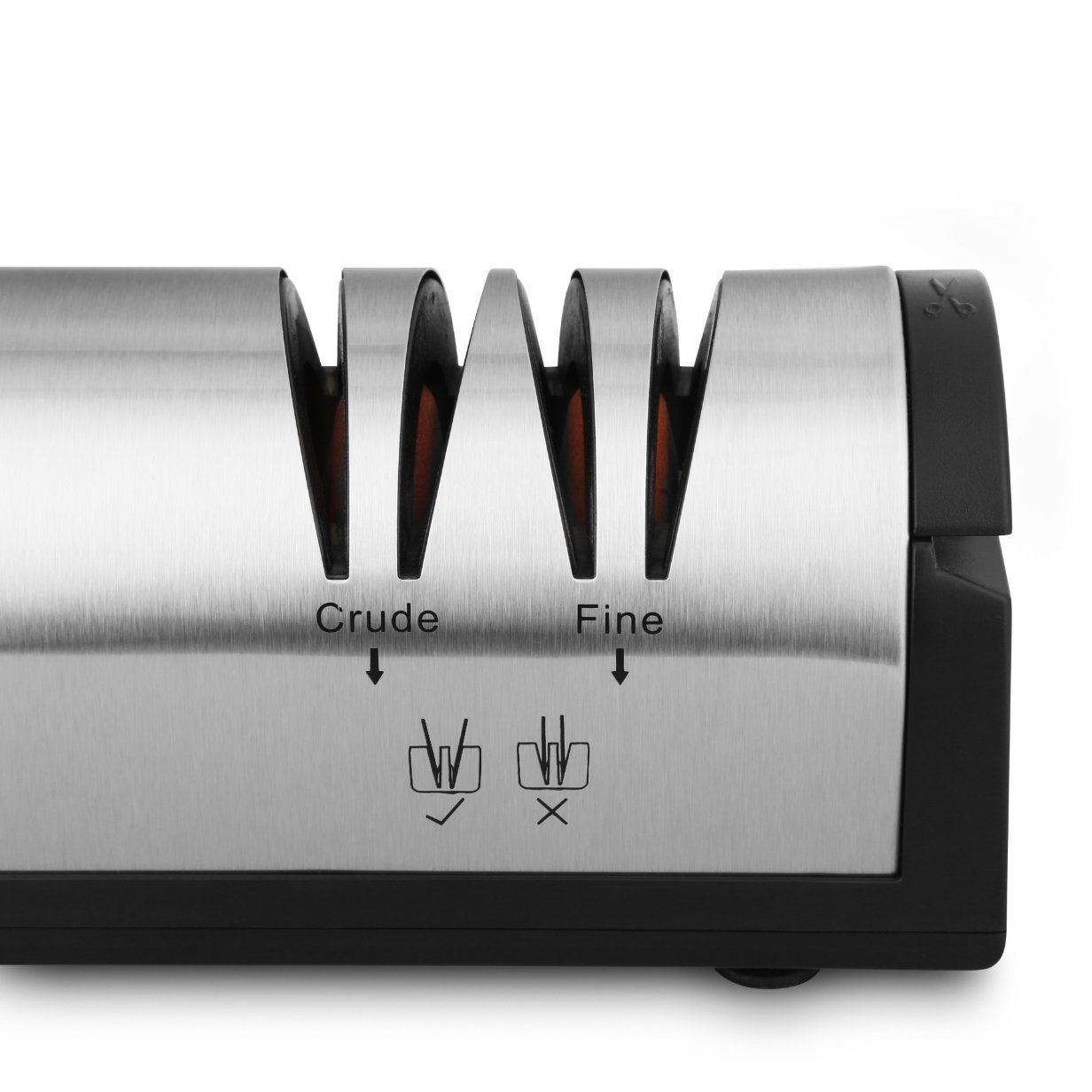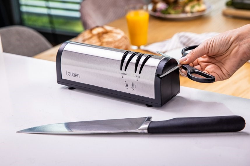 Díky Lauben Knife Sharpener 4700SB nabrousíte většinu nožů a sekáčků v pohodlí domova. Přidali jsme i speciální slot na broušení nůžek, i s těmi se tedy bruska Lauben poradí. Bruska umožňuje dva stupně broušení – hrubé a hladké začištění. Díky vodicím drážkám pro udržení správného sklonu a optimálnímu brusnému úhlu 15° zvládnete dokonale nabrousit každé ostří jako profesionál. Stačí brusku zapojit, spustit a vložit ostří, které chcete nabrousit.