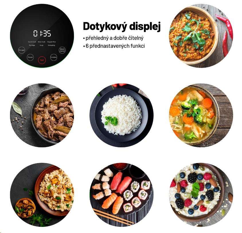 K perfektně uvařené rýži, která je vláčná, a tak akorát na skus, často vede trnitá cesta. S rýžovarem Lauben připravíte jakýkoli druh rýže přesně al dente, stisknutím jednoho tlačítka. Rýží to ale jen začíná. Rýžovar si díky 6 chytrým funkcím poradí i s jinými surovinami. Během několika minut připravíte lahodné polévky, nadýchanou ovesnou kaši nebo luštěniny bohaté na bílkoviny. Samozřejmostí je funkce opětovného ohřevu. Chcete si vychutnat dokonale připravené, zdravé a chutné jídlo? Stačí si na displeji zvolit požadovaný režim a počkat si na bezchybný výsledek.