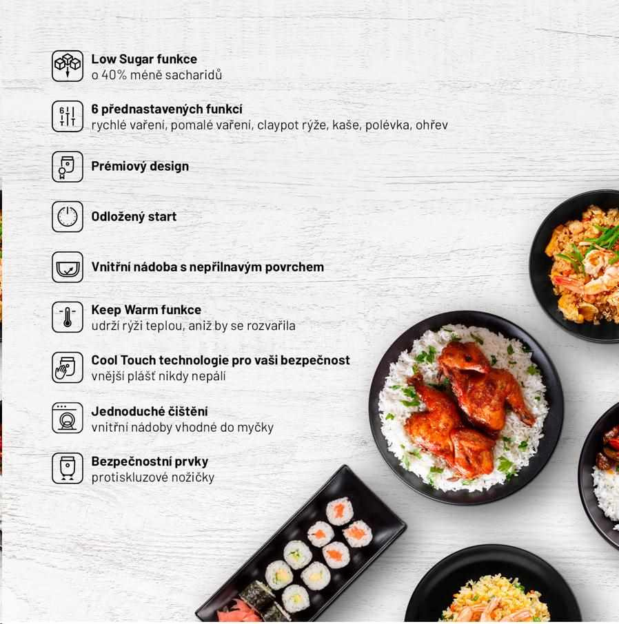 le id="description_lauben_2019-11-19"> Lauben Low Sugar Rice Cooker 1500WT Rýže s až o 40 % nižším obsahem sacharidů Lauben Low Sugar Rice Cooker je víceúčelový prémiový rýžovar s funkcí low sugar, při níž díky speciální technologii vaření dochází k separaci sacharidů. S tímto pomocníkem dovedete k dokona... více