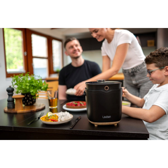 Proměnit vaření v zábavu, která navíc zabere minimum času, je nyní díky Lauben Multifunction Rice Cooker 2000BW jednodušší než kdy dřív. Víceúčelový rýžovar s keramickým nepřilnavým povrchem vnitřního hrnce o objemu 2 l se stane dokonalým pomocníkem na cestě ke zdravému životnímu stylu. Jeho 12 přednastavených programů si poradí s přípravou různých pokrmů, které i začátečník uvaří jako šéfkuchař. Za pomoci nerezového pařáčku pro dušení v páře můžete vařit ještě zdravěji, a to stiskem jediného tlačítka. Když vám však program nevyhovuje, pohodlně si vše nastavíte i manuálně. Manipulaci a ovládání usnadňuje praktické madlo, dotykový displej a technologie Cool Touch, která je zároveň bezpečnostním prvkem zabraňujícím popálení. Uživatelsky přívětivá údržba, kdy stačí vnitřní hrnec vložit do myčky, také uspoří spoustu času. Prémiový design s dřevěným dekorem ozdobí každý interiér.