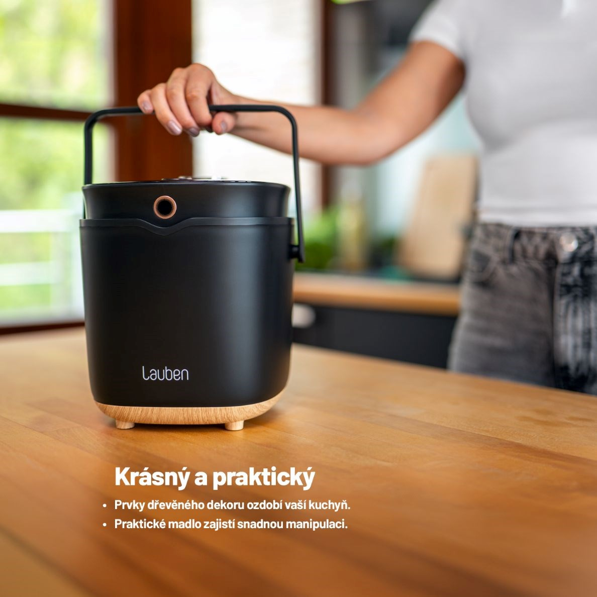 Rýžovar se díky svému designu s prvky dřevěného dekoru stane ozdobou kuchyně. Vkusnou a praktickou součástí je madlo pro snadnou manipulaci.