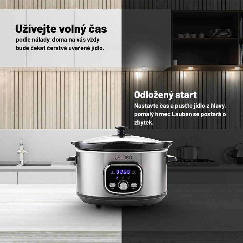 Pomalé vaření uspoří čas strávený v kuchyni. Zní to nepravděpodobně, ale je to tak. Pomalý hrnec totiž vaří sice pomalu, ale sám. Do hlavní nádoby umístíte všechny ingredience, stisknete tlačítko a o zbytek se postará hrnec. Už jste někdy připravili guláš bez stání u plotny za neustálého hlídání a míchání? Představte si, že stisknete večer tlačítko, jdete si číst nebo cvičit, o kuchyň se nestaráte, a ráno je oběd hotový a ještě ke všemu perfektní. S Lauben Slow Cooker 3500SB se tato představa stává realitou.