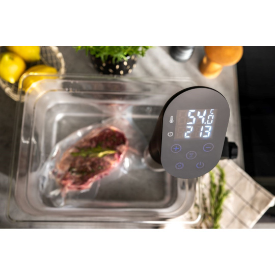 Chcete si pochutnat na vynikajícím, zdravém jídle, jehož příprava vám nezabere celé odpoledne? Chcete si doma připravit maso, co se bude rozpadat na jazyku, ale přitom neztratí na objemu a vždy si zachová svůj tvar a barvu? Nemusíte nutně chodit do restaurace. Lauben Smart Sous Vide je ideálním pomocníkem do kuchyně pro každého, kdo chce ušetřit hodiny strávené u sporáku, a přesto dostat z ingrediencí maximum. Díky metodě vaření sous vide si připravovaná jídla zachovají všechny chutě, vůně a živiny, o které nechcete při vaření přijít. Vařič jednoduše zapnete a ponoříte do hrnce s potravinami připravenými ve speciálních zip lock sáčcích, které jsou součástí balení. O ostatní už se Lauben Smart Sous Vide postará, vy si jen vychutnáte famózní výsledek.