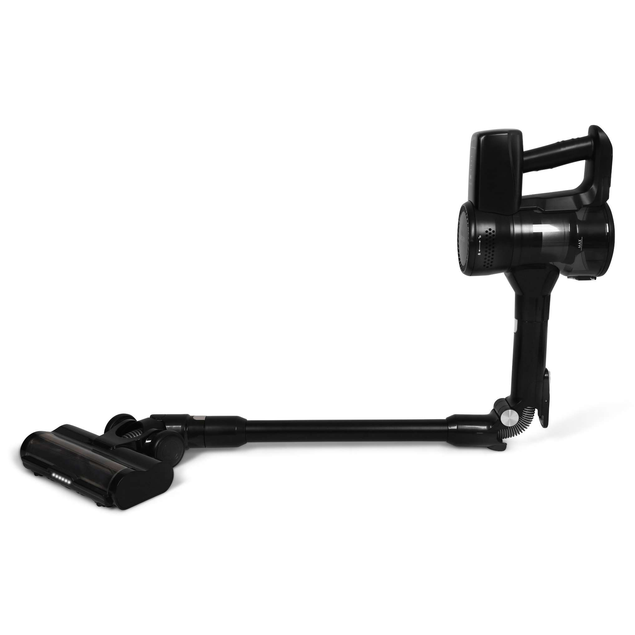 Univerzální motorizovaný kartáč se hodí pro všechny druhy podlah včetně těch, na nichž se pohybují domácí mazlíčci. Nejen jejich chlupy bezpečně odstraní hlavice se systémem proti namotávání vlasů. Úklid usnadňuje flexibilní tyč s kloubem a sběrná nádoba umístěná v horní části, vysavač tak jednoduše zajede i pod nábytek a do užších prostor. Díky provedení bez kabelu a možnosti úpravy na ruční vysavač lze přístroj využít kdekoliv, například při čištění auta. Vydrží až 35 minut na jedno nabití.