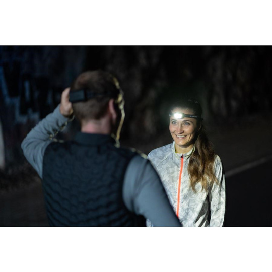 Svítilnu je možno připevnit na hrudní pás a zamezit tak oslňování běžců či chodců v protisměru.