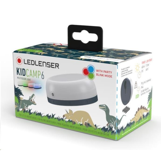 LEDLENSER KIDCAMP 6 je malá kapesní lucerna přizpůsobená speciálně pro citlivé dětské oči a dětské zacházení. Světlo je vhodné do stanů, karavanů, ale i do dětských pokojíků – zkrátka všude, kde je potřeba osvítit prostor příjemným neoslňujícím světlem. Svítilna je vybavena vestavěným hákem pro snadné uchycení. Možnost volby ze čtyř barev světla a funkce blikání navíc rozzáří každou dětskou oslavu.