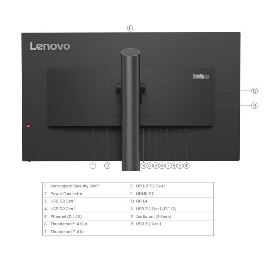 LENOVO LCD P32p-30 - 31,5”,IPS,matný,16:9,3840x2160,178/178,4ms/6ms,250cd/m2,1000:1,HDMI,DP,USBC,RJ45,USBHub,Pivot,VESA