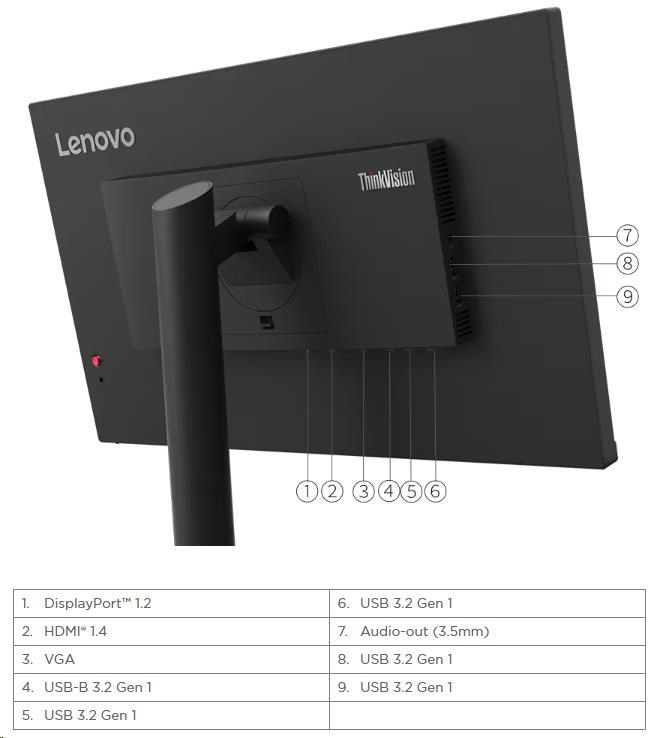 LENOVO LCD T24i-30 - 23.8”,IPS,matný,16:9,1920x1080,178/178,4ms/6ms,250cd/m2,1000:1,VGA,DP,HDMI,4xUSB,VESA,Pivot