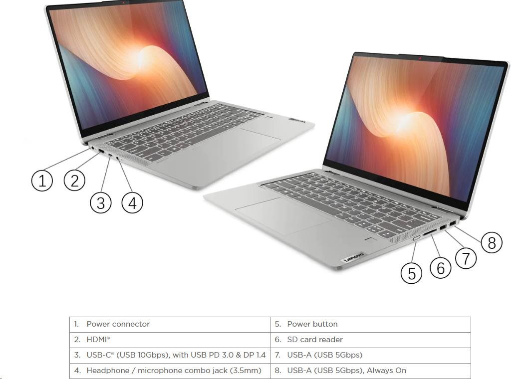 Typ zařízení:Konvertibilní; Operační systém:Windows 11 Home; Řada procesorů:AMD Ryzen 5; Model procesoru:AMD Ryzen 5 5500U; Výkon CPU dle PassMark:12717; Počet jader:14; Maximální frekvence procesoru (GHz):4.3; Frekvence procesoru (GHz):1.8; TDP:28; Model grafické karty:AMD Radeon; Velikost paměti RAM (GB):16; Úhlopříčka displeje ("):14.