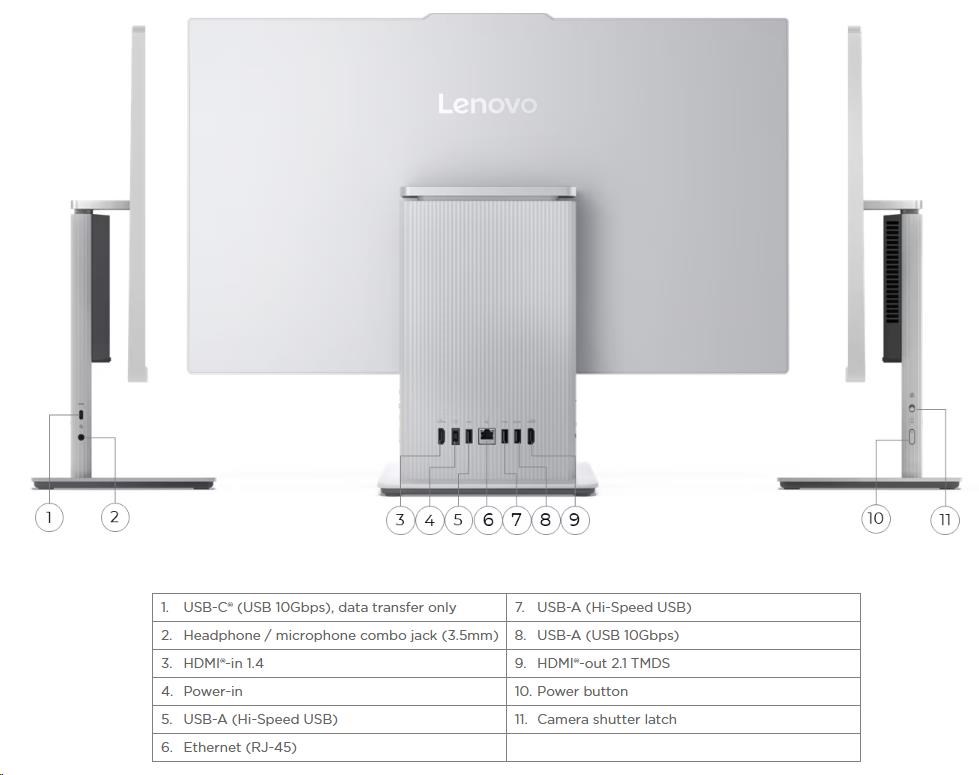 | Standartné porty | 1x USB-A (USB 10Gbps / USB 3.2 Gen 2) 2x USB-A (Hi-Speed USB / USB 2.0) 1x HDMI®-in 1.4 1x HDMI®-out 2.1 TMDS 1x Ethernet (RJ-45) 1x power connector |