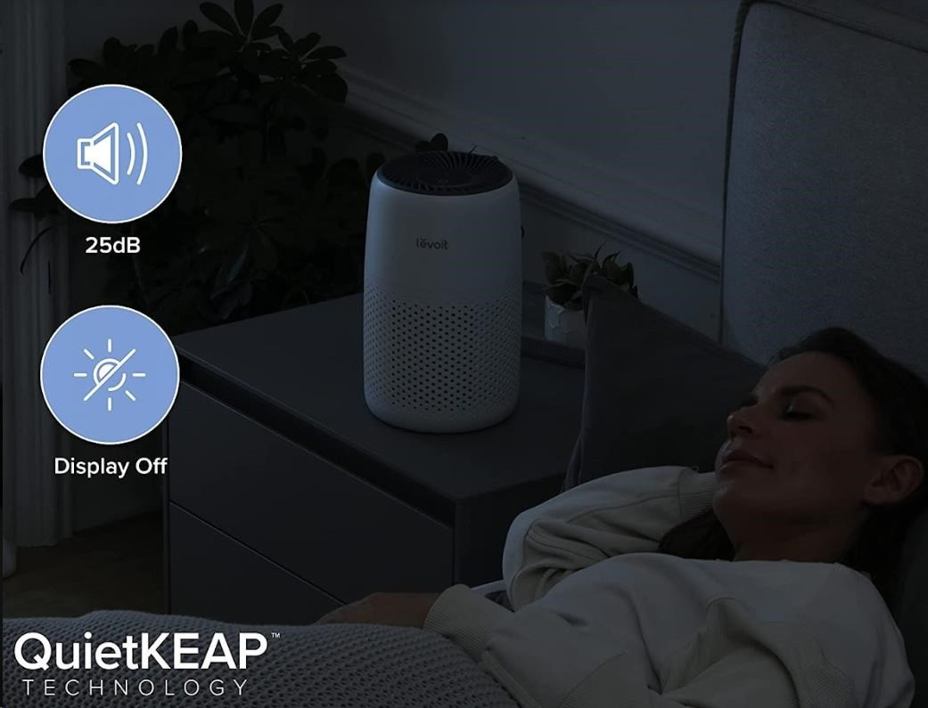 Díky patentované technologii QuietKEAPTM ani nebudete vědet, že je čistička Levoit Core Mini v provozu. Při nejvyšším výkonu dosahuje již tak nízké hlučnosti 44dB. Pro nerušený spánek se přímo nabízí noční režim, v kterým je hlučnost ještě nižší – 25 dB. V nočním režimu se také aktivuje tlumené osvětlení a můžete si vypnout podsvícení ikonek.