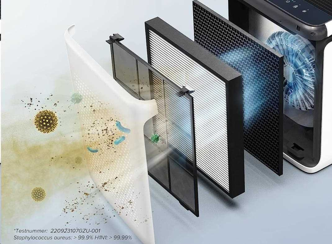 Filtrace vzduchu probíhá ve 3 vrstvách. První je vnější umývatelný předfiltr, který zachycuje nejhrubší částice jako prach, vlákna, části vlasů nebo chlupů.