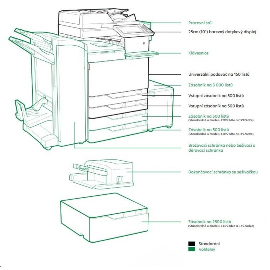 LEXMARK barevná tiskárna CX921de, A3, 35ppm,2048 MB, barevný LCD displej, DADF, USB 2.0, LAN.