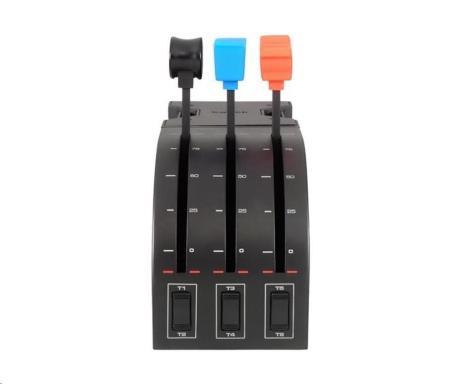 If you like to fly multi-engine aircraft, most flight sim controllers leave you a couple throttles short. Flight Throttle Quadrant is the solution, providing three extra levers to control even more engines, flaps, gear, spoilers or any other programmable axes. In addition, three momentary, two-way toggle switches on the quadrant's base create a total of nine programmable commands. Add it to Logitech G Flight Yoke System for double the throttle axes.
