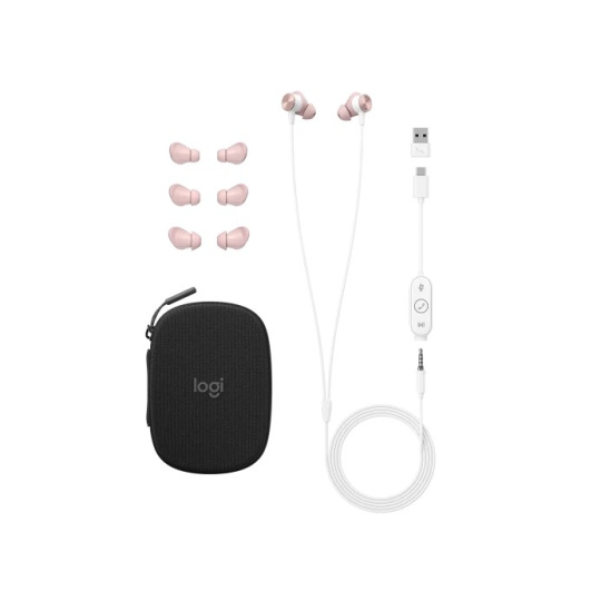 Logitech sluchátka Zone wired Earbuds, drátové, růžová