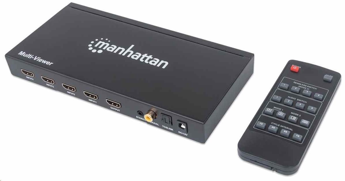Manhattan HDMI přepínač, 1080p 4-Port HDMI Multiviewer Switch, černá