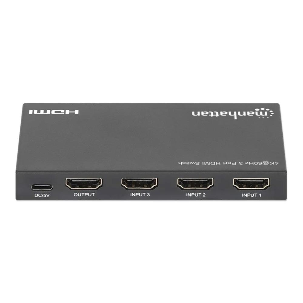 Manhattan 3portový HDMI přepínač umožňuje spolehlivé a pohodlné přepínání mezi třemi různými HDMI zdroji a jedním displejem. Podporuje rozlišení až Ultra-HD 4K při 60 Hz a nabízí automatické přepínání na právě aktivní zařízení, stejně jako manuální volbu pomocí IR dálkového ovladače nebo tlačítka. Díky šířce pásma až 18 Gb/s, chroma subsamplingu 4:4:4 a podpoře HDR, Dolby Vision a Dolby Atmos poskytuje živé barvy a ostrý kontrast bez degradace obrazu. Kompatibilní je napříč různými zařízeními – herní konzole, streamovací boxy, notebooky nebo Blu-ray přehrávače.