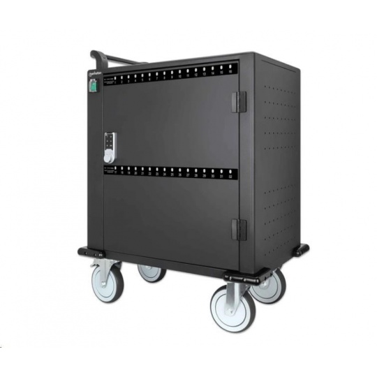 MANHATTAN nabíjecí vozík - 32 portů, 576 W, přepěťová ochrana, tichá ventilace, kovové pouzdro, černá