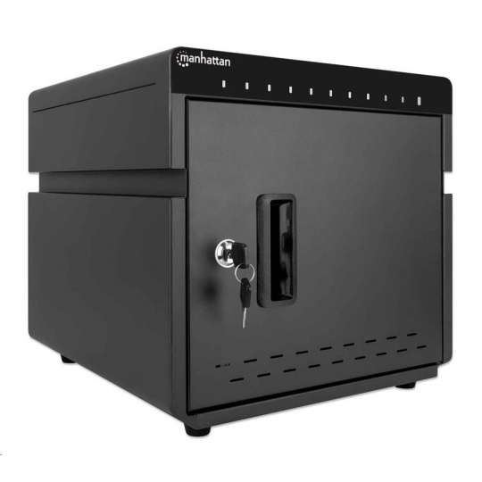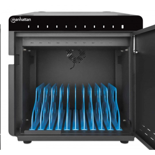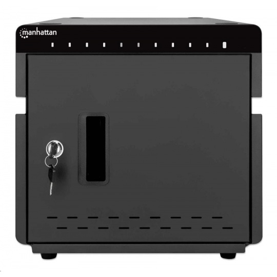 MANHATTAN stolní nabíjecí skříň - 10 portů, 180 W, přepěťová ochrana, tichá ventilace, kovové pouzdro, černá
