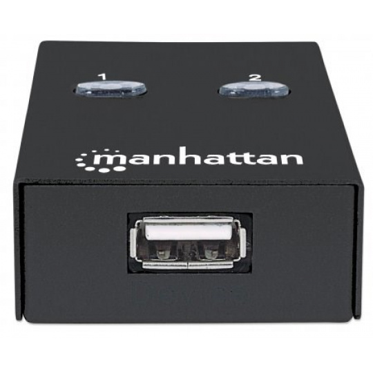 The Manhattan Hi-Speed USB 2.0 Automatic Sharing Switch easily allows two computers to share a USB device. It's ideal for home and office use where users need to share a USB cable modem, printer, digital camera, scanner, external storage drive or other peripheral. Use the convenient access-on-demand switching for activation with a single click of an onscreen button, or use on-board switches to manually select an active computer.