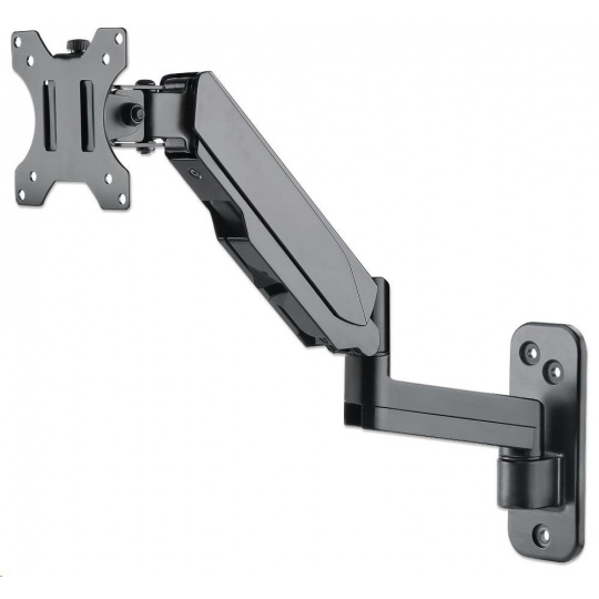 The Manhattan Universal Gas Spring Monitor Mount offers a single-jointed gas-spring arm that securely holds one 17" to 32" TV or monitor. This mount's gas spring promotes easy movement of the display to a more comfortable viewing angle with the lightest touch. Designed to give back much needed desktop real estate and maximize productivity, the Manhattan Universal Gas Spring Monitor Mount provides more flexibility, reach, and overall enjoyment of whatever task is at hand.