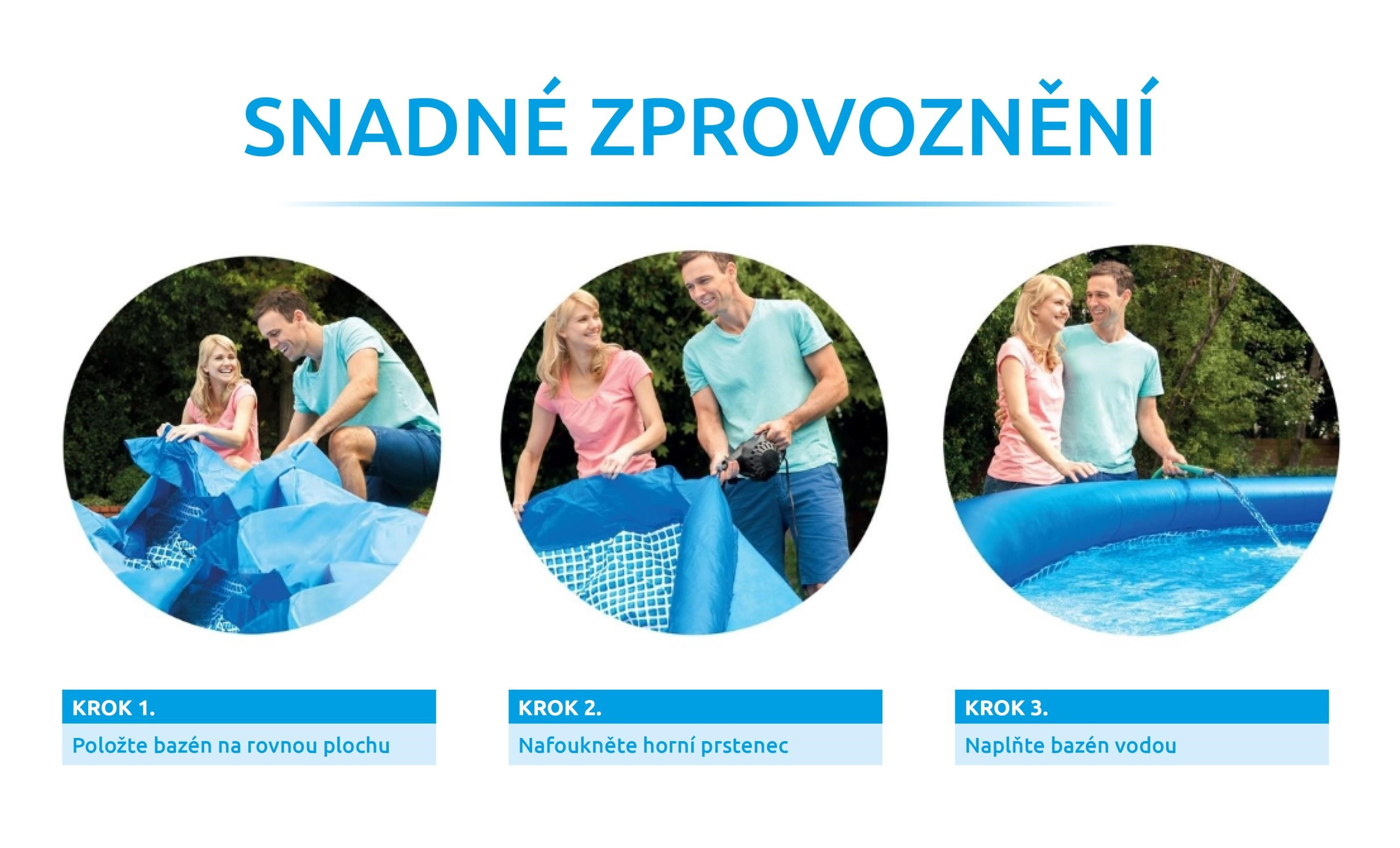 Bazén Tampa se řadí mezi nejprodávanější a nejoblíbenější bazény v České republice. Koupání ve vlastním bazénu si může dopřát opravdu každý. Předností bazénu Tampa je nízká cena, snadná údržba i rychlé zprovoznění. Stačí jen připravit místo na bazén, rozvinout bazénovou podložku, bazén rozbalit, nafouknout horní límec a začít napouštět vodu. Stoupající voda sama bazén postaví. Od vybalení bazénu můžete do 10 minut napouštět vodu. Bazén je nutné po skončení bazénové sezony vyčistit, vypustit a uklidit na suché, nemrznoucí místo. Správnou údržbou prodloužíte životnost bazénu. Doporučujeme bazén po koupání zakrývat krycí plachtou. Pro snadné nafouknutí doporučujeme zakoupit ruční či elektrickou pumpu.