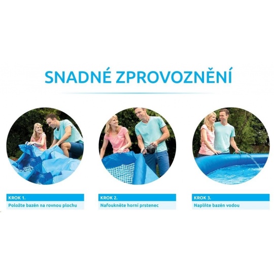 Bazén Tampa se řadí mezi neprodávanější a nejoblíbenější bazény v České republice. Koupání ve vlastním bazénu si může dopřát opravdu každý. Předností bazénu Tampa je nízká cena, snadná údržba i rychlé zprovoznění. Stačí jen připravit místo na bazén, rozvinout bazénovou podložku, bazén rozbalit, nafouknout horní límec a začít napouštět vodu. Stoupající voda sama bazén postaví. Od vybalení bazénu můžete do 10 minut napouštět vodu. Bazén je nutné po skončení bazénové sezony vyčistit, vypustit a uklidit na suché, nemrznoucí místo. Správnou údržbou prodloužíte životnost bazénu. Doporučujeme bazén po koupání zakrývat krycí plachtou. Pro snadné nafouknutí doporučujeme zakoupit ruční či elektrickou pumpu. Bazénová folie: Stěny a dno jsou vyrobeny z pružného a pevného 3vrstvého POLYSTRENGHT PVC materiálu. Barva imituje vzhled ratanu. Připojení filtrace: K bazénu můžete připojit libovolnou kartušovou či pískovou filtraci z naší nabídky. Pro napojení filtrace jsou připraveny průchody stěnou bazénu o průměru 32 mm (5/4"). Pro připojení pískové či kartušové filtrace je nutné dokoupit: 6 ks bazénových hadic 2 ks průchodu stěnou bazénu 1 ks instalační sady Součásti balení bazénu Tampa: bazén Tampa návod záslepky průchodů stěn bazénu Tolerance rozměrů bazénu: Uvedené rozměry bazénu jsou pouze orientační a ovlivnit je může rovnost podkladu, objem napuštěné vody nebo nafouknutí límce. Povolená výrobní odchylka je 5 %. Upozornění: Fotografie produktu jsou ilustrační Zapuštění bazénu Tampa: Bazén Tampa není určen k celkovému ani částečnému zapuštění do země. Jedná se o nadzemní bazén. Uskladnění bazénu Tampa: Bazén Tampa není určen k celoročnímu provozu a proto by měl být na konci koupací sezóny zazimován. Bazén je potřeba vypustit, umýt od nečistot, osušit a uložit na suché místo, kde nemrzne. Je vhodné ho v průběhu zimy občas přeskládat, aby ve folii nevznikaly přehyby. Prodloužíte tak jeho životnost. Rozměry a typ bazénu Barva: vzhled Ratan Průměr bazénu: 3,66 m Průměr hladiny vody: 307 cm Výška bazénu: 0,91 m Celkový objem vody v bazénu: 6,6 m3 Modelová řada: Bazény Tampa Konstrukce: Samonosný bazén Bazén: Bez filtrace Tvar bazénu: Kruh Vybavení bazénu Krycí plachta součástí balení: Ne Podložka součástí balení: Ne Schůdky součástí balení: Ne Skimmer součástí balení: Ne Rozměry a hmotnost balení 1. balík: 50 x 37 x 26 cm, 14,3 kg Hmotnost: 14.29 kg.