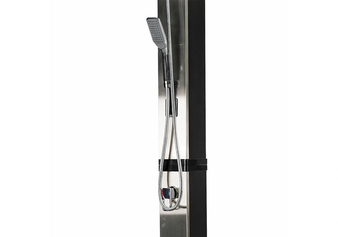 Sprcha je též vybavena ventilem pro možnost nastavení teploty výstupní vody. S ohledem na teplotu vody uvnitř sprchy, která může dosahovat až 60 °C, se doporučuje nejprve natočit ventil vpravo, jeho vychýlením směrem od těla sprchy pustit studenou vodou a následovně vodu domíchat na požadovanou teplotu natáčením ventilu směrem vlevo. Sprcha je vyrobena z plastu.