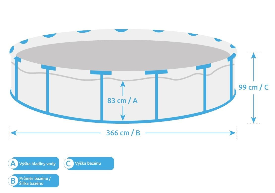 Průměr hladiny vody: 366 cm
