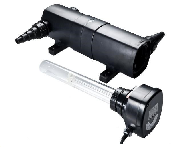 Určeno pro filtrace s provozním tlakem max. 0,3 bar a o výkonu do 4 m3/hod. UV lampa má napojení na na 32 i 38 mm hadice.