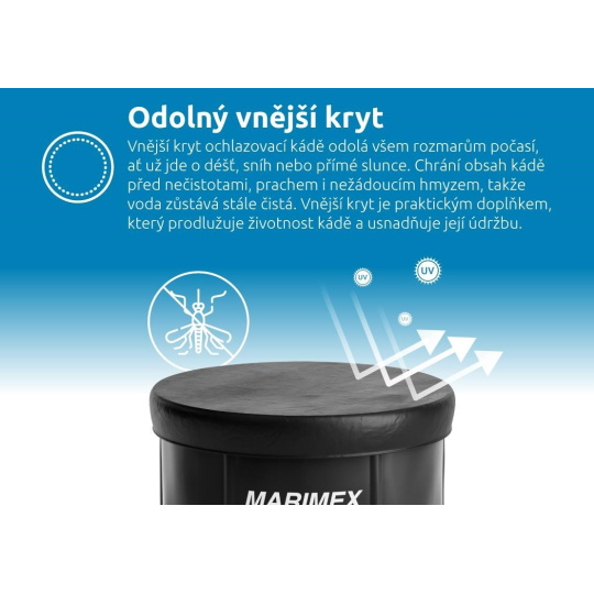 Díky odolnosti vůči teplotám v rozmezí -20 °C až 50 °C můžete káď využívat po celý rok, a to bez ohledu na počasí. Praktická výpusť umožňuje rychlé vypuštění vody, zatímco vnější kryt chrání káď před nečistotami, prachem a hmyzem. Termokryt navíc udržuje optimální teplotu vody, minimalizuje tepelné ztráty a zvyšuje energetickou úspornost. Tyto vlastnosti společně s jednoduchou manipulací dělají z ochlazovací kádě ideálního společníka na zahradu, terasu i do saunovacího prostoru.
