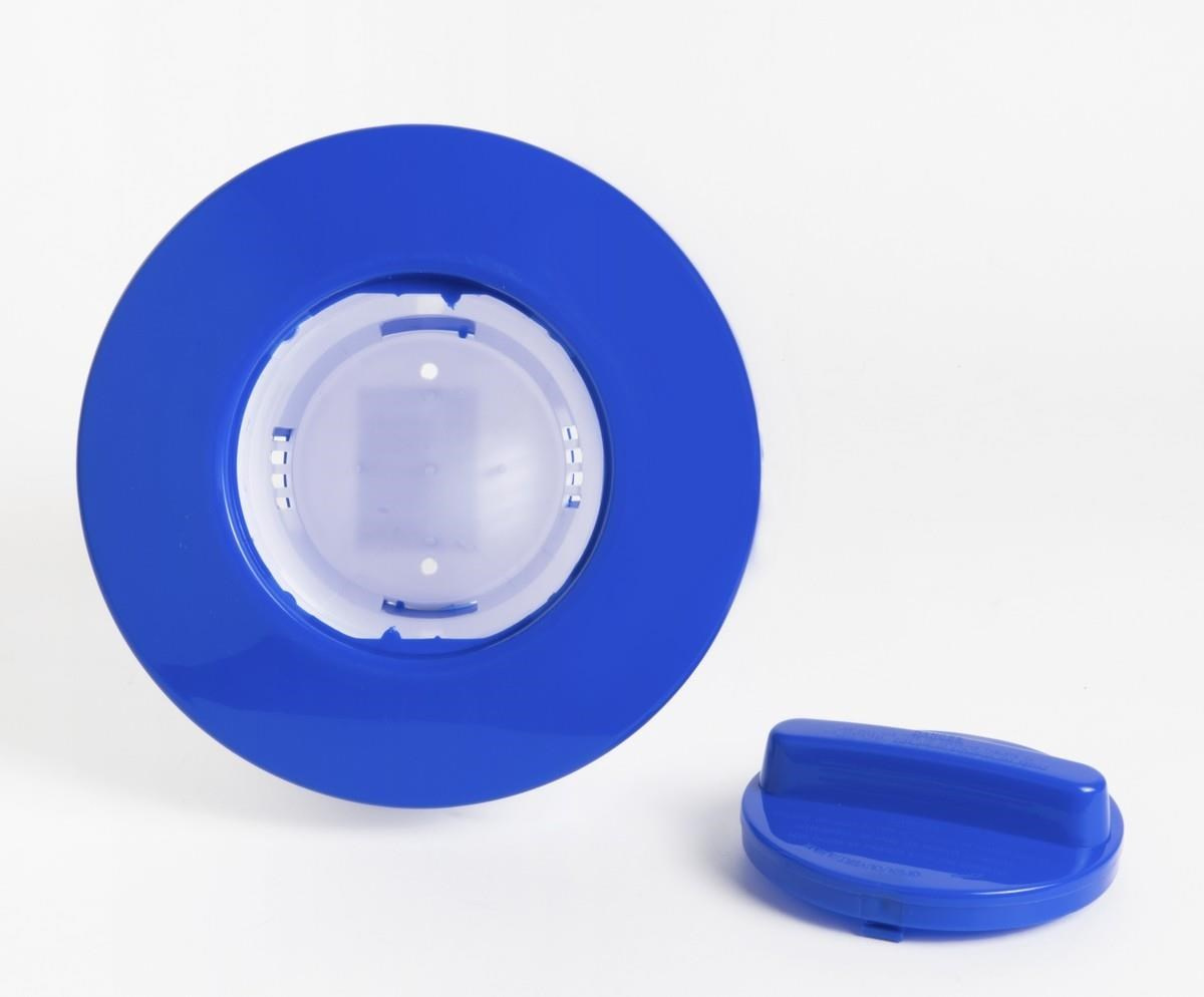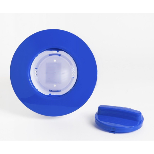 Plovoucí plastový dávkovač s regulační mřížkou pro chlorové tablety.