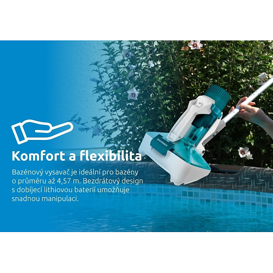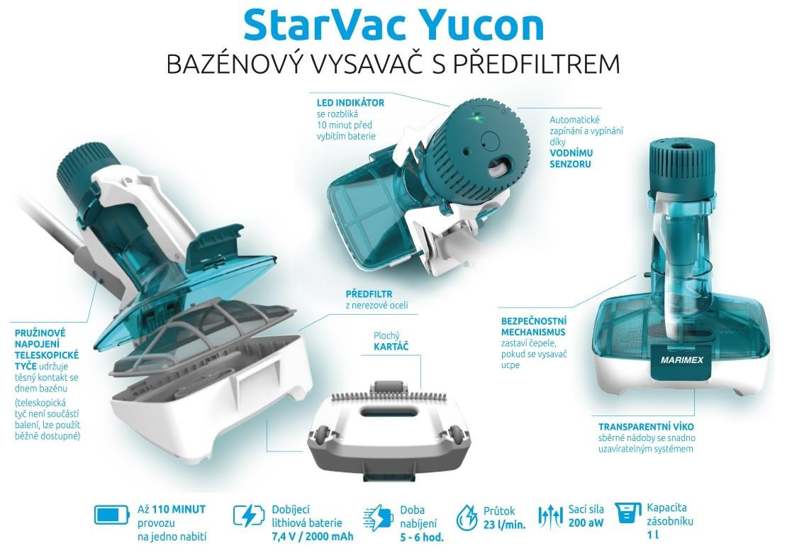 Bezdrátový a přenosný bazénový vysavač Marimex StarVac Yucon je vhodný pro nadzemní i zapuštěné bazény do průměru 4,57 m. Výhodou je i LED indikátor, který vás upozorní na vybití baterie. Vysavač Yucon vydrží pracovat téměř 2 hodiny na jedno nabití..... více