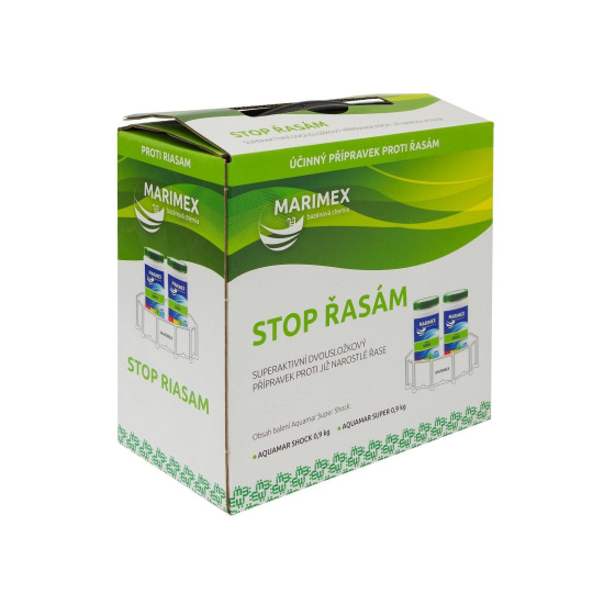 Marimex Super Chlor Šok je superaktivní dvousložkový prostředek proti již narostlé řase. Tento přípravek odstraní i černou řasu. Bublinky stoupající k hladině strhávají a nabalují řasy na sebe a vynášejí je s sebou na hladinu. Zneškodněné řasy z hladiny odstraní skimmer.
