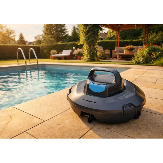 Model SupraVac Trinity je určen pro všechny typy bazénů — včetně slané vody do 5000 ppm. S kapacitou zásobníku 2,4 litru a průtokem 75,3 l/min si poradí i s většími nečistotami. Bez problémů se ponoří až do hloubky 2 metrů.