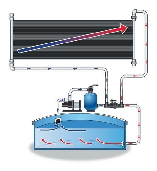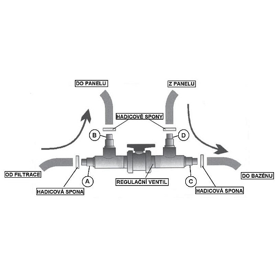 Toto rozdělení v podstatě funguje jako vypínač, či regulátor solárního ohřevu, kdy se přes ventil odkloní tok vody a proudí tak přímo zpět do bazénu. Pokud tedy na noční filtrování bazénu chcete solární ohřev "vypnout", neboť v nočních hodinách má solární ohřev opačný efekt a bazénovou vodu spíše ochlazuje, doporučujeme použít právě náš kulový ventil..