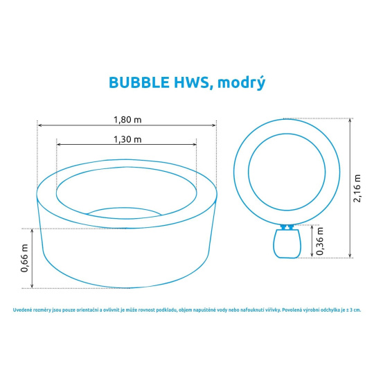 - Vnější průměr: 180 cm (po naplnění vodou, tolerance ± 5%)